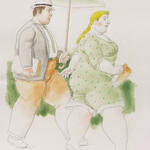 Fernando Botero es un pintor, dibujante y escultor colombiano, nacido en Medellín en 1932. Se inicia en el dibujo con escenas de la fiesta brava como ilustrador en 1944, a los 12 años, para posteriormente hacer sus primeras acuarelas. En los años cincuenta y sesenta el estilo de Botero se va definiendo, pero aún la pincelada en su pintura y el trazo en sus dibujos es suelta. Entre 1966 y 1968 Botero termina de definir su estilo, desarrollando el volumen de las formas y alterando las proporciones. A partir de 1973, Botero se instala en París, incursiona en la escultura, la cual llegará a dominar con gran maestría y con exposiciones de obras monumentales en las principales vías de muchas ciudades del mundo. En la actualidad, y después de casi ocho décadas de trabajo en el mundo del arte, Botero dedica sus días a la creación de dibujos y acuarelas de pequeño formato, donde se manifiesta su dominio de la técnica.